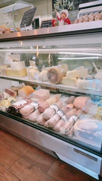 お店の中にはイタリアの食材やワインなど様々な商品が陳列されていて、その中にデリがあるんです✨生ハムやソーセージなどの加工品から、ピザやパニーニなどすぐに食べられるものまで幅広く用意されていました![]()