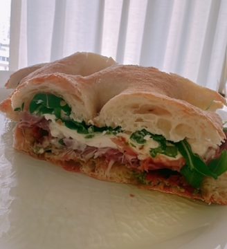 出来上がったパニーニを受け取ると。。。予想よりも大きい。。。そしてずしりと重い💦1つ$24と、なかなかなお値段だったのでどのくらいの大きさかなぁ